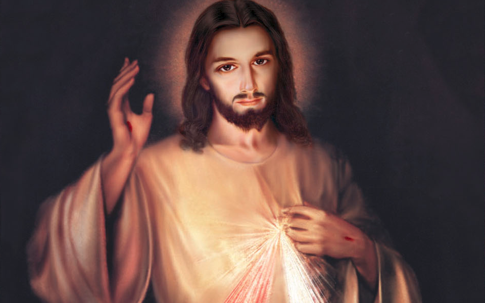 A imagem de Jesus Misericordioso e o seu modelo foram mostrados numa visão que Santa Faustina teve no dia 22 de fevereiro de 1931 na cela do Convento em Plock. “À noite, quando me encontrava na cela – escreve no Diário – vi Jesus com uma túnica branca. A sua mão direita erguida para abençoar e a outra tangendo a veste junto ao peito. Do lado entreaberto da túnica emanavam dois grandes raios de luz, um vermelho e outro pálido (…) Passado um instante, Jesus disse-me: “Pinta uma Imagem conforme a visão que te aparece, com a inscrição: “Jesus, eu confio em Ti” (Diário 47 . “Quero que essa Imagem (…) seja solenemente benzida no primeiro Domingo depois da Páscoa. Nesse Domingo deve ser a Festa da Misericórdia” (Diário 49).