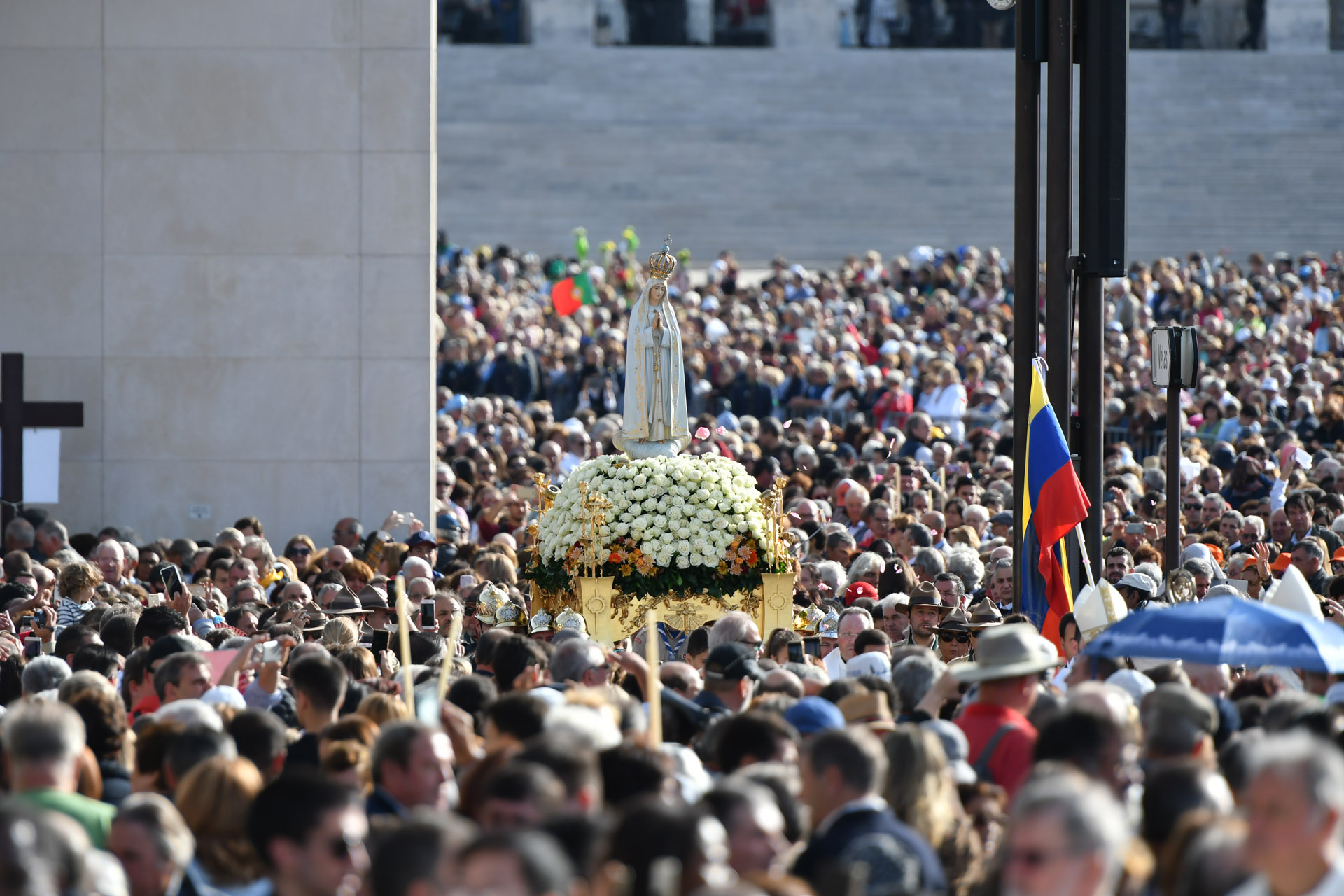 “Deus está contente com os vossos sacrifícios…” comunicava Nossa Senhora aos Pastorinhos a 13 de setembro de 1917, num momento em que o mundo mergulhava na dramática angústia da guerra e a humanidade tinha a tristeza estampada no rosto. Mas eis que do Céu uma voz desce e vem-nos falar da alegria de Deus, – “Deus está contente”. Sim, Ele nunca desiste de nós, nem deixa de rasgar os horizontes da humanidade com a luz da esperança. Jamais Ele permite que o mal comande os desígnios da história. É um Deus vivo que conhece e experimenta o doce sabor da alegria. Da alegria que irrompe sempre que o ser humano se deixa resgatar e é salvo. Foi essa a alegria do Pai Misericordioso quando viu regressar a casa o seu filho “que estava morto e reviveu, estava perdido e foi encontrado.” (cf Lc 15, 24); foi também a que assomou no coração do Bom Pastor quando encontrou a ovelha perdida. E é o regozijo do banquete nupcial que esplende na comunhão dos santos junto do Pai.