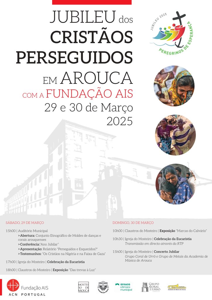 Para rezar, sensibilizar e alertar a consciência das pessoas e sobretudo dos responsáveis políticos para este drama a Fundação AIS decidiu celebrar nos dias 29 e 30 de março o Jubileu dos Cristãos perseguidos e escolheu a igreja jubilar do Mosteiro de Arouca para o fazer, de acordo com o programa que segue.