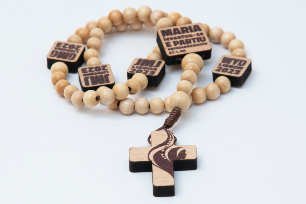 “A oração, neste caso a oração do Terço, é uma das caraterísticas universais da Jornada Mundial da Juventude. Pretendemos, por isso, que a peça fosse de fácil uso, manuseamento, e de grande simplicidade. Destacamos também o forte propósito de inclusão e o da sustentabilidade”, refere Jorge Almeida, do Gabinete de Comunicação da JMJ Lisboa 2023, responsável pela área da marca e merchandising, que coordenou a criação do terço.
