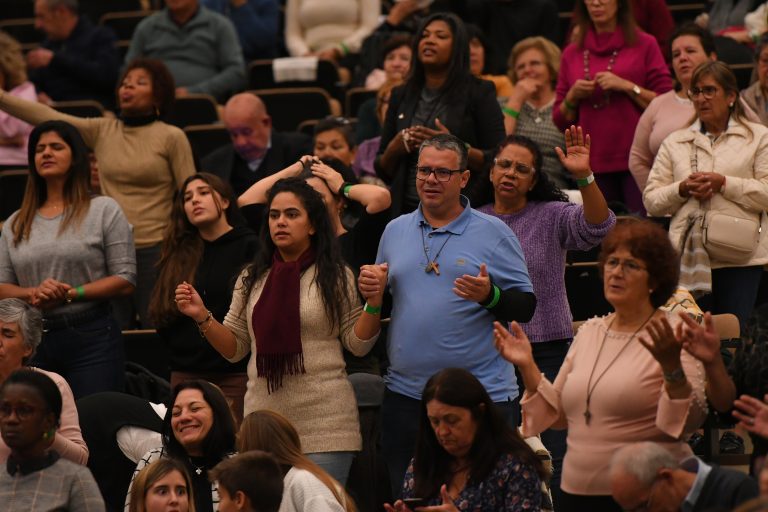 Com Liliane Borges, missionária da Canção Nova a moderar este momento de homenagem, estiveram presentes para recordar e partilhar acerca de Monsenhor Jonas Abib, o presidente da Canção Nova, Padre Wagner Ferreira e os missionários com mais tempo nesta história de evangelização em Portugal: Márcia Costa e o casal João Luiz e Fátima Oliveira (Fatinha).