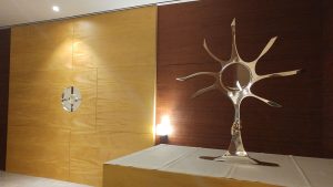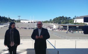 O Padre Joaquim Ganhão, responsável pela celebração litúrgica da visita do Papa Francisco, e a Arquiteta Joana Delgado, Consultora do Serviço de Ambiente e Construções do Santuário fizeram as “honras da casa” com a visita guiada ao novo altar e ao piso inferior, subterrâneo, onde concentra os serviços de apoio, incluindo a Capela da Sagrada Reserva e sacristia.