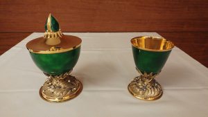 Cálice e Píxide principais: Oferta dos doentes que participaram num retiro, no mesmo âmbito, desejando com este gesto ofertar os seus sofrimentos ao Pai, unindo-os ao sofrimento de Jesus Cristo. Este gesto é muito significativo devido à dimensão da mensagem de Fátima, sendo uma alfaia usada sempre nas celebrações da Páscoa.